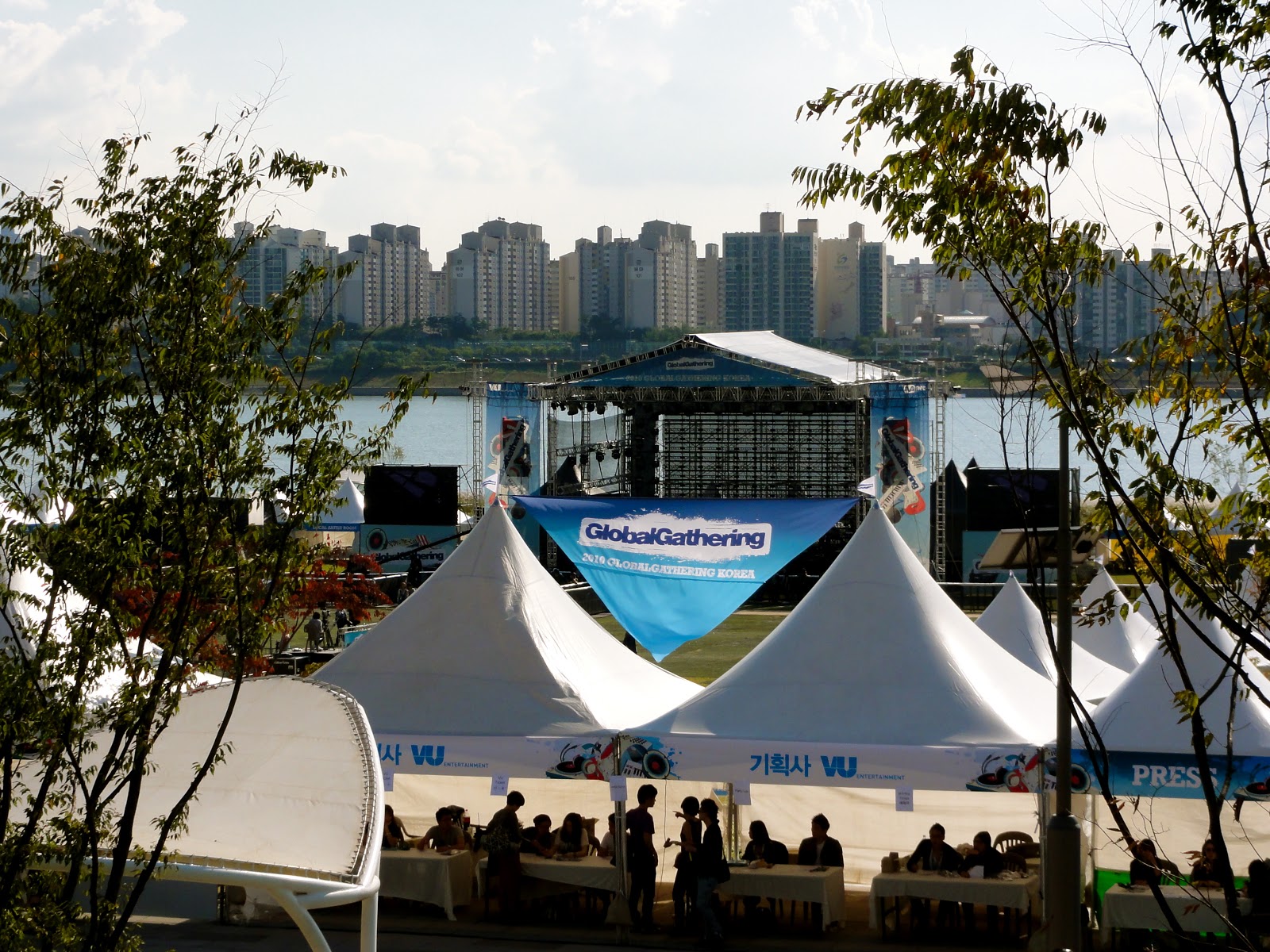 It was a 1 hour 40 minute ride on the KTX fast train, something like 8 stops on the Seoul subway maze and a 20 minute ride on a lovely Global Gathering-sponsored shuttle bus.