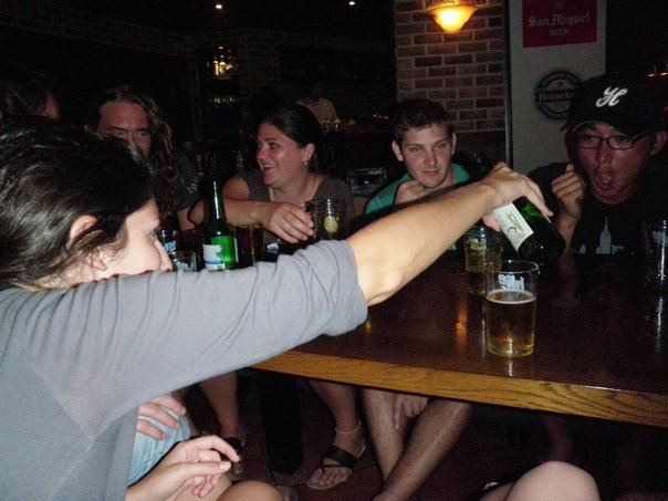 About the pics:The underground subway mall had an interactive information booth that can take and email pictures. I sent that one to Danna.Teengirl Fantasy - opening band on Thursday.Handsome Furs.Handsome Furs with Beth and me.Charlie and Pat "aka" Chaz playing beer pong at Thursday Party.So I have officially finished teaching my first full week of classes. Not bad at all. I have a few kids that might be comparable to the "problem child" but I will find ways to handle them. So far, I'm really enjoying myself here.The Handsome Furs show on Thursday night was incredible. The first live music show I have been to outside of the States - there were definitely a lot of westerners, but there was still a different vibe that is unlike any in the US. The band's energy was feeding onto the crowd and the crowd's energy was bouncing right back, and everyone was having an amazing time. After the show, the band hung around taking shots with all of us and chatting with everyone. I had a long conversation with the lead singer about a show of his I saw in San Diego, and that led to him telling me about the 2 bands he's in and how he met his wife and their plans for the next year or so. It was a great time!This weekend was my first real weekend out in Daegu - last weekend we were out with the school and the other night I stayed in. I also stayed in on Friday night... I needed a day off after the Thursday night show - you'd think that work at 4pm the next day is enough recovery time... it's not.Last night, I went out downtown with some friends and made many new friends. We went to the usual spots that all the "foreigners" frequent - The Holy Grill (American food, foozball tables, Nintendo Wii, American Sports on TV, good music, Canadian owned), Thursday Party (Korean bar catered to foreigners, beer pong games, darts, some dancing, and often times, a lot of army guys), Who's Bob (a dingy, dive bar that everyone ends up at after all of the other spots - usually around 2am or later). It was a fun night, I definitely met a TON of people and got back home around 4am or something. Apparently it's not an unusual occurrence to leave the bars when the subways are up and running again - they stop running at 11:30pm every night and I think they start back up around 6 or 7am. I keep forgetting to take pictures of the funny things - you can buy: a zip-loc bag of alcohol with any mixed drink for about $2.50. They shake it up and stick a straw in it and wait for you to taste-test it - you can instruct them to add more alcohol to your taste, no limit. Also, at the end of the night there were some little food carts serving 4 inch in diameter pizza rounds in a dixie cup - those were about $1.The weekend goes by so quickly! I'm slowly gathering things for my apartment to make it feel more homey. I'll get there.Back to classes tomorrow!
