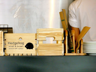 There's always random English text out and about, on signs, in shops, restaurants, etc. The hedgehog appeared at a burger joint about a 5 minute bike ride from my apartment.
