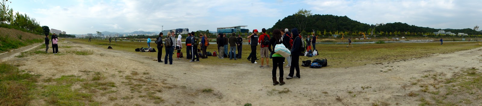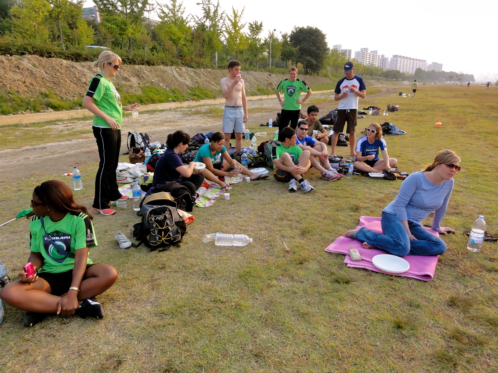 When we arrived in Daejon, the field was not as glamorous as we had anticipated. Drew, sprawled out on a bench in his