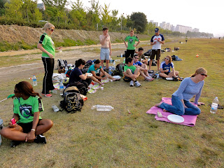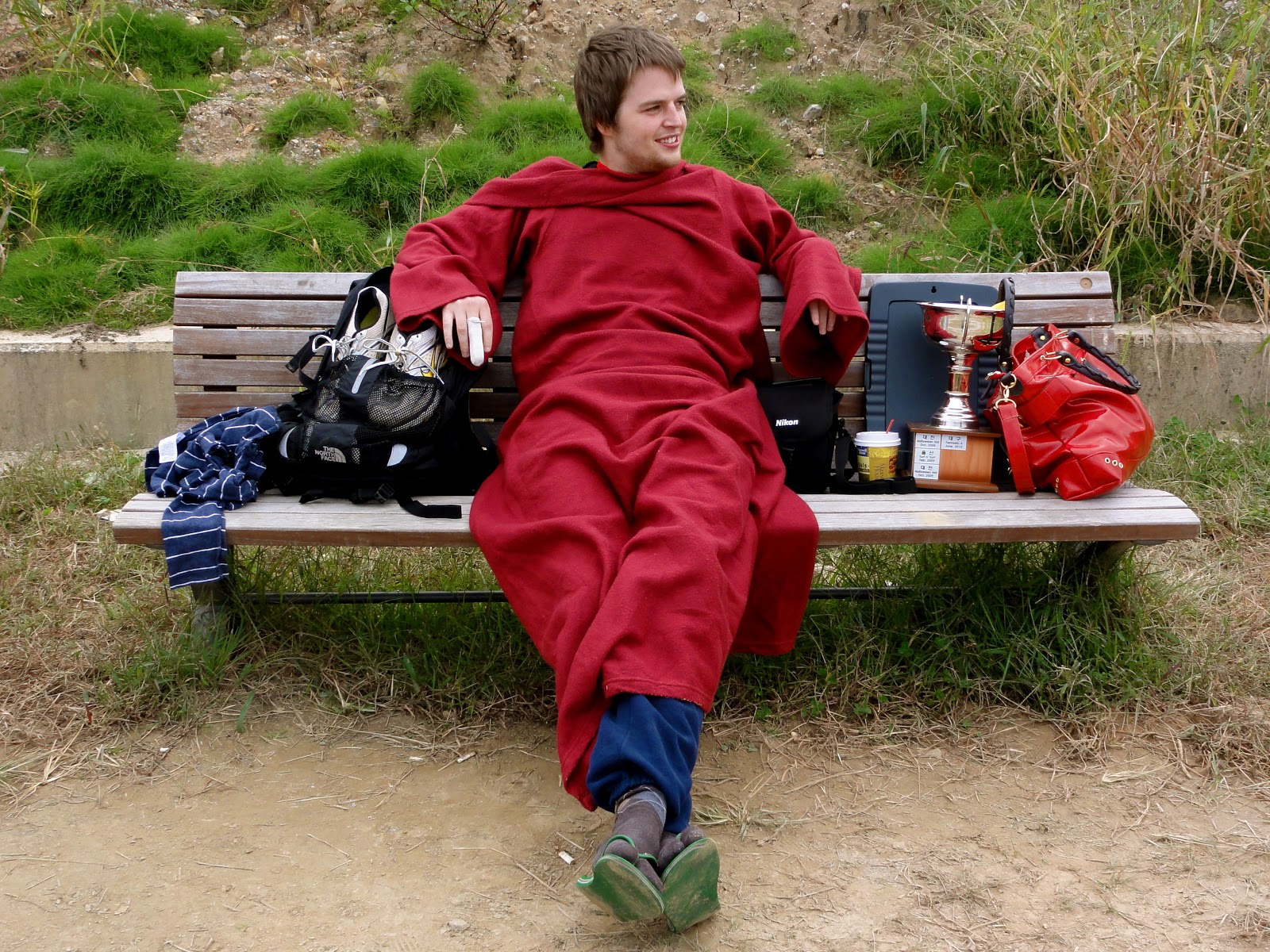 Snuggie showing his disappointment. Shortly after the games began, a group of older Korean men posted up a few feet from one of our end zones and started a warm-up routine. Some of the DUFL members joined in looking awesomely ridiculous. The weekend turned out to be full of competitive games and a fun night out with a group that doesn't typically party together.
